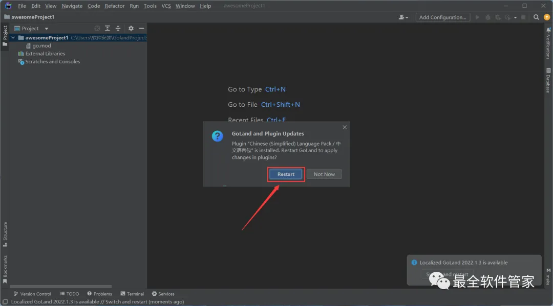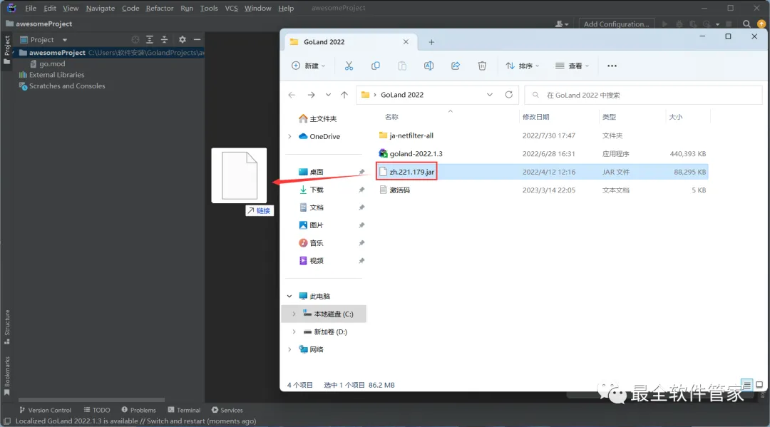 34、回到GoLand 2022文件夹,找到【zh.221.179.jar】文件,把它拖到GoLand 2022.1.3软件内
