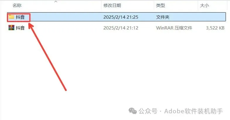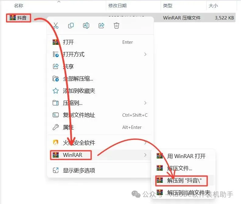 1.打开下载的抖音安装包,鼠标右击压缩包选择【解压到 抖音\】。
