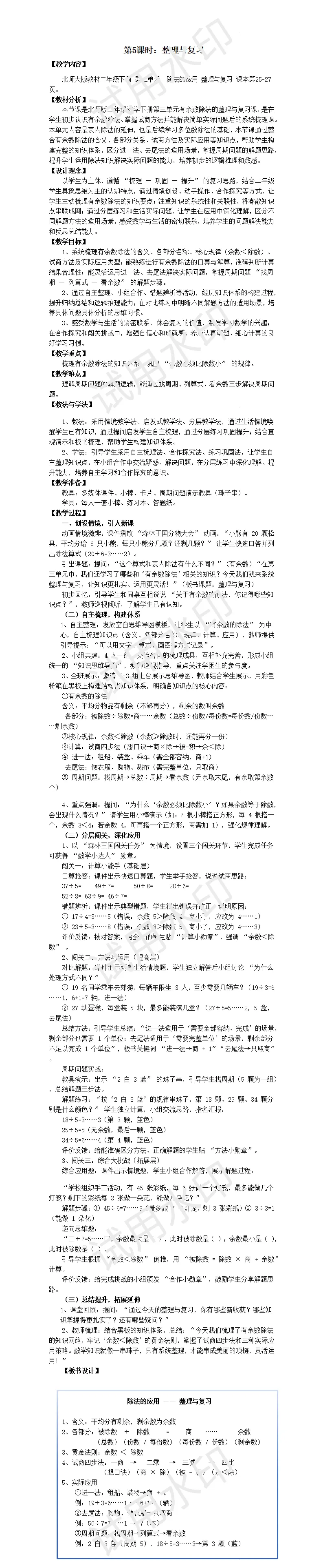成功之处在于,通过引导学生自主整理知识框架,学生对有余数除法的概念、计算方法以及余数和除数的关系有了更系统的认识,强化了知识间的内在联系。课堂上设置的实际问题情境,如分物品,让学生深刻体会到数学与生活的紧密联系,有效提升了运用知识解决问题的能力。