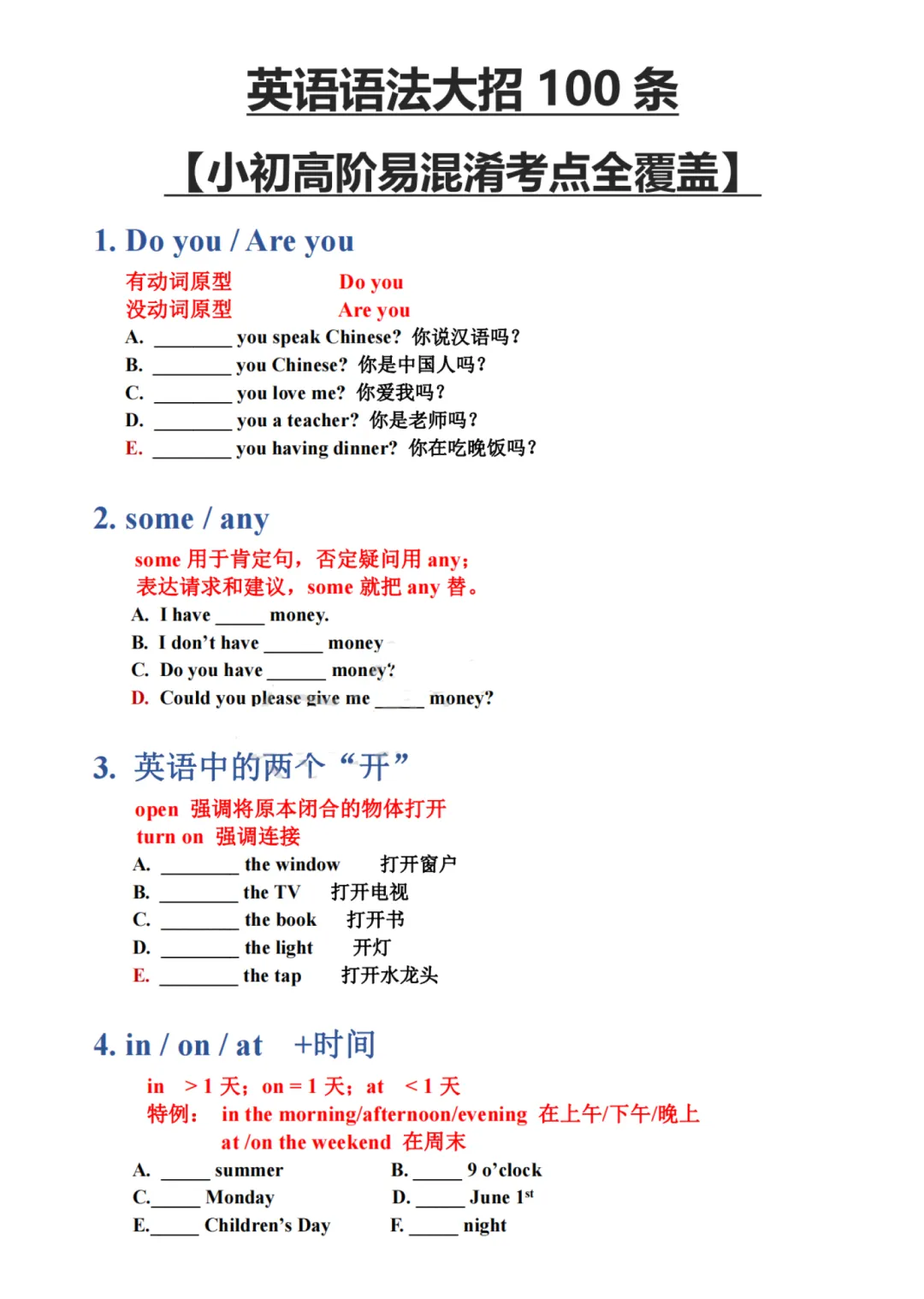 英语语法大招100条,可免费下载
