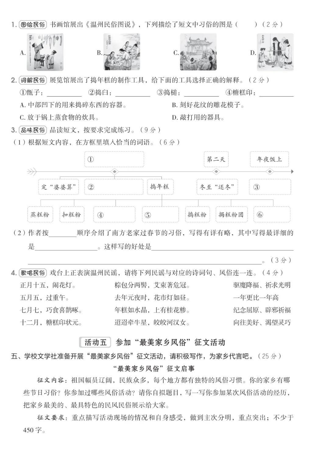 试卷紧扣单元核心,从字音辨析、看拼音写词语,到加一加减一减识字法、课文背诵,再到阅读理解和看图写话,全面考察孩子的语文应用能力。题型活泼生动,贴合一年级认知特点,既能检测学习效果,又能激发学习兴趣。