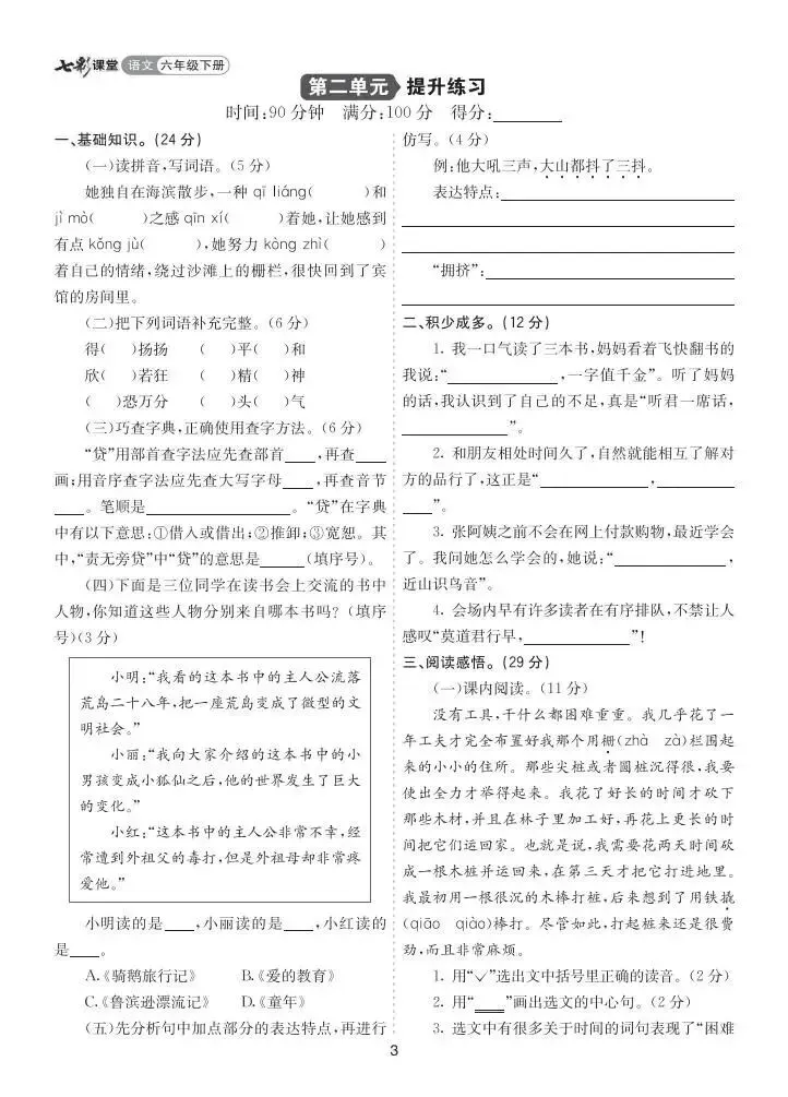 大家好,今天为大家分享一套针对小学六年级下册语文学习的实用教辅资料,希望能帮助孩子们在新学期里巩固知识、提升成绩。