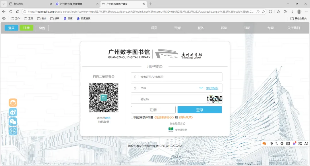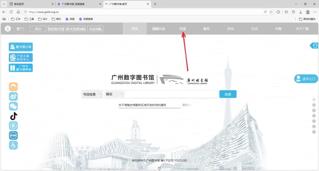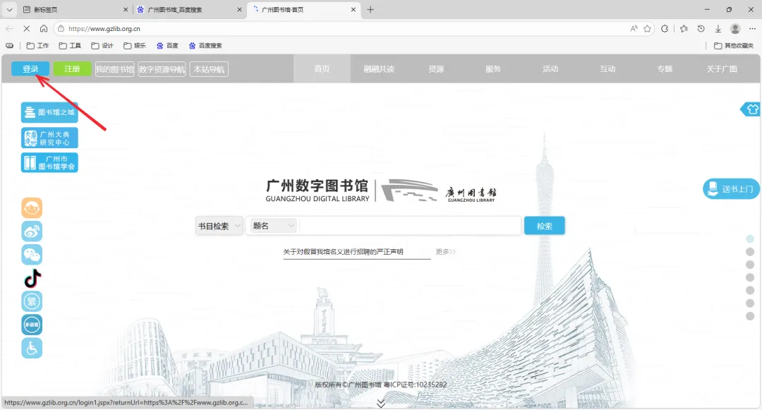 第二步:登录广州图书馆官网