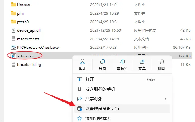 3.鼠标右击【setup】选择【以管理员身份运行】。