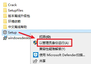 5.返回安装文件夹,选中“Setup”右键选择“以管理员身份运行”