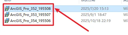 15.返回安装文件夹,双击打开“版本离线升级包”文件夹,依次按顺序双击安装“ArcGIS_Pro_352、353、3534.msp”这几个文件,直至全部安装完成