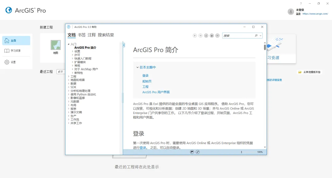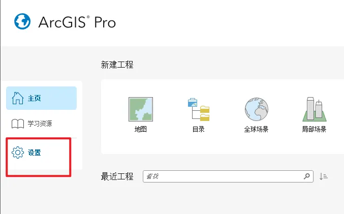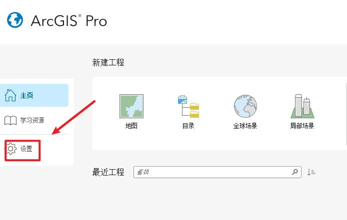 36.打开ArcGIS Pro软件,点击“设置”