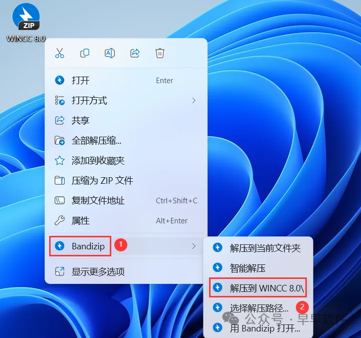 1、下载WINCC 8.0软件安装包到电脑上,右键选择【解压到WINCC 8.0\】