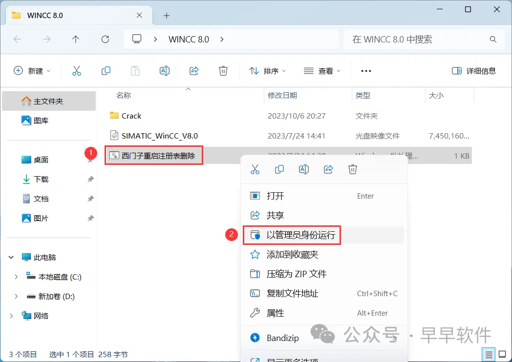 3、找到【西门子重启注册表删除】程序,右键选择【以管理员身份运行】它