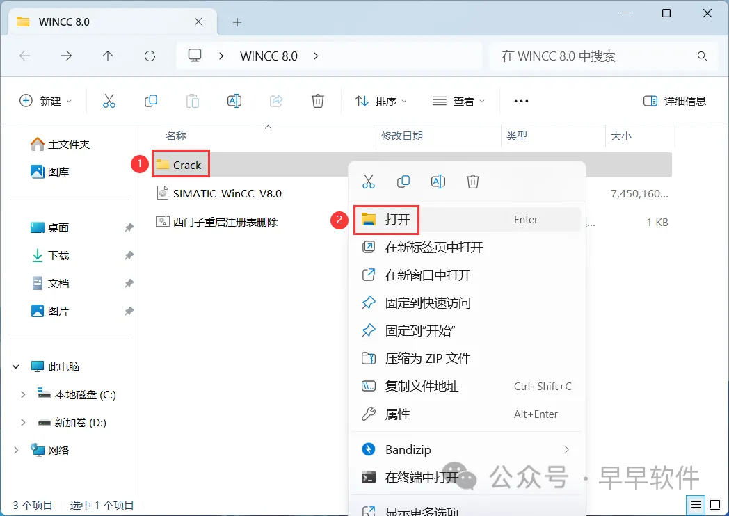 21、回到WINCC 8.0文件夹,找到【Crack】文件夹,右键【打开】它