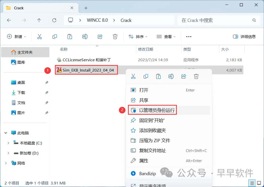 29、回到Crack文件夹,找到【Sim_EKB_Install…】程序,右键选择【以管理员身份运行】它