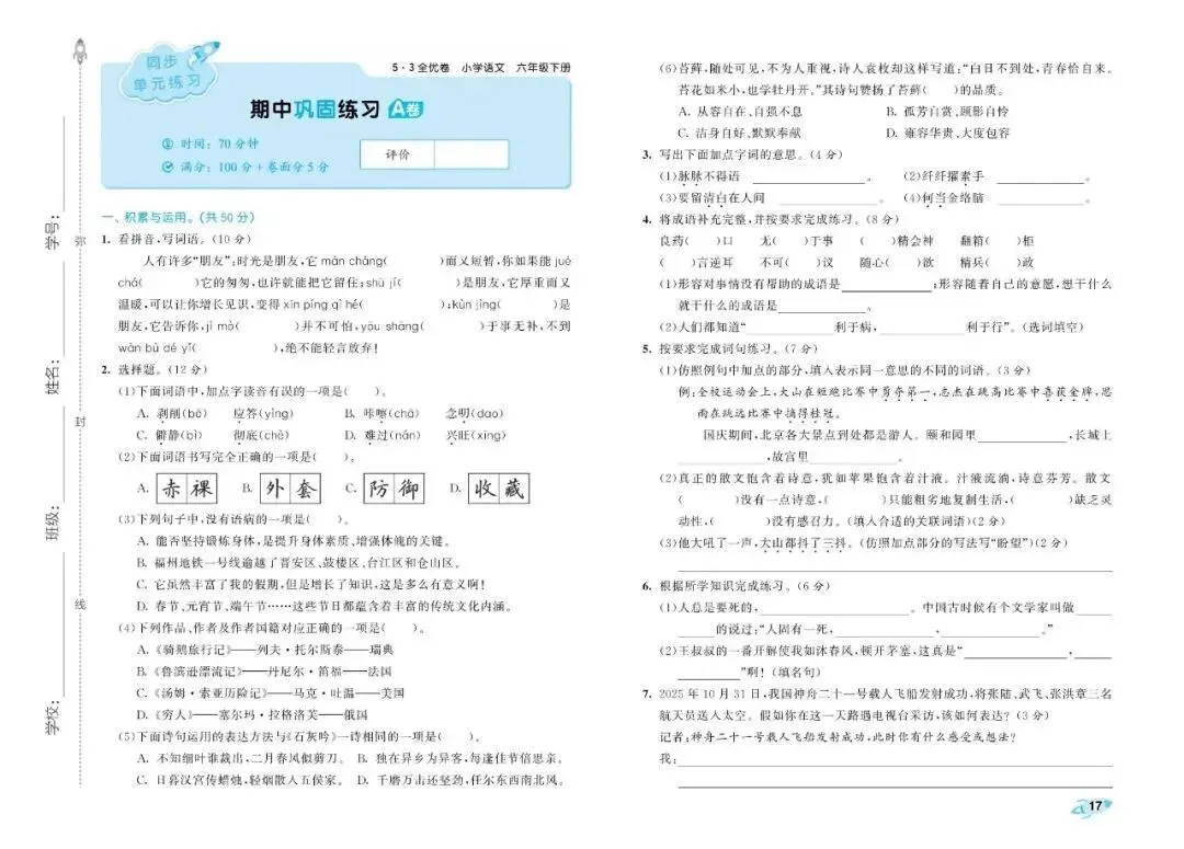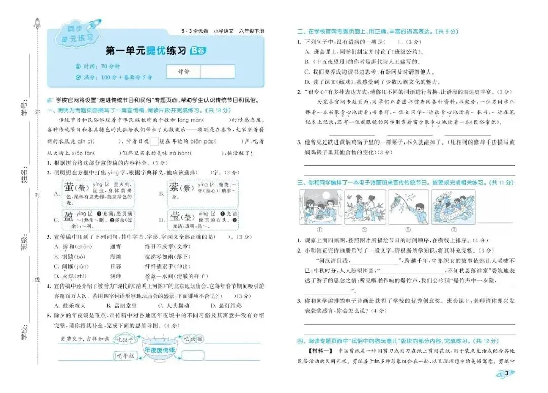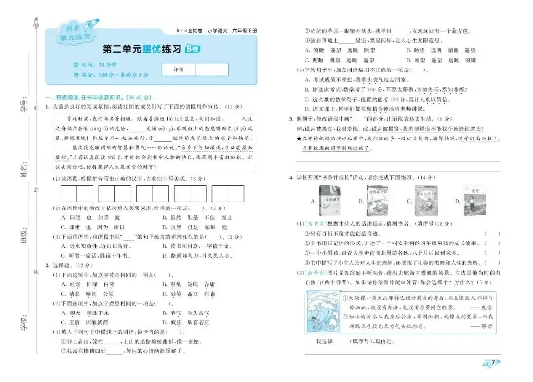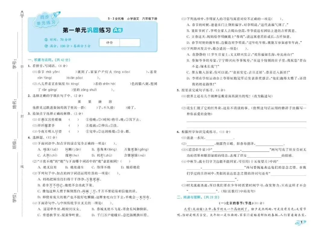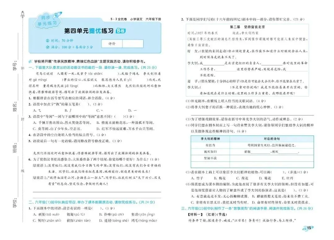 大家好,今天为大家分享26春人教部编版六年级下册语文《全册单元提优AB卷+期中期末真题测试卷》共29套(附答案)高清电子版可打印。通过单元测验,能清楚地看出孩子哪些知识点没掌握,方便及时查漏补缺,让孩子养成"学完一个单元,总结一个单元"的好习惯。期中期末真题卷帮助孩子系统复习,构建知识框架,从"零散学习"过渡到"整体把握"。