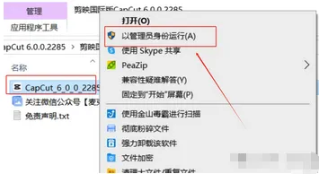 2.打开解压后的文件夹,找到【CapCut_6_0l】应用程序,右键选择【以管理员身份运行】。