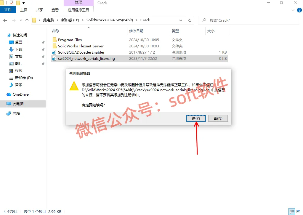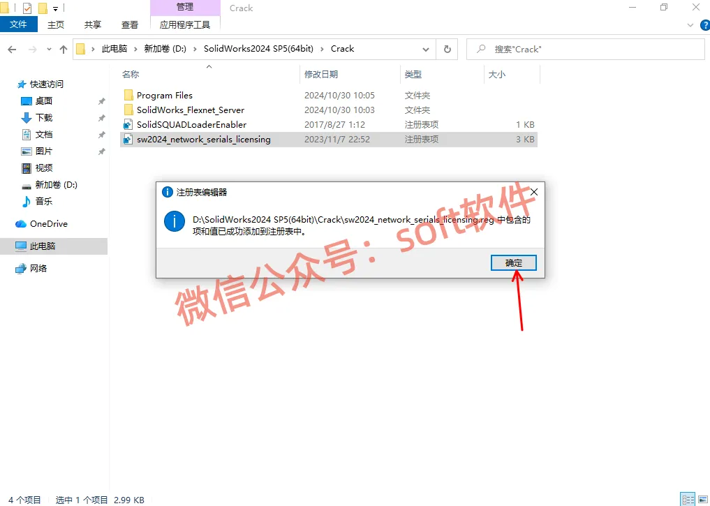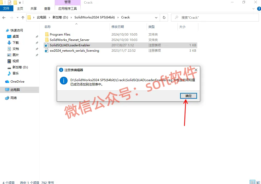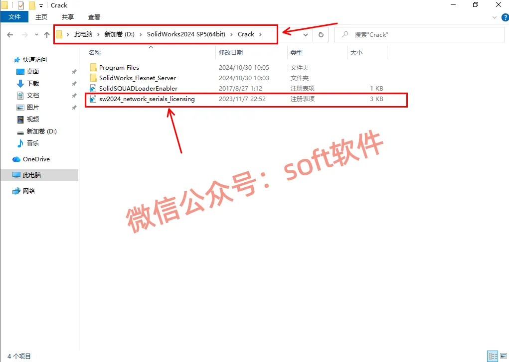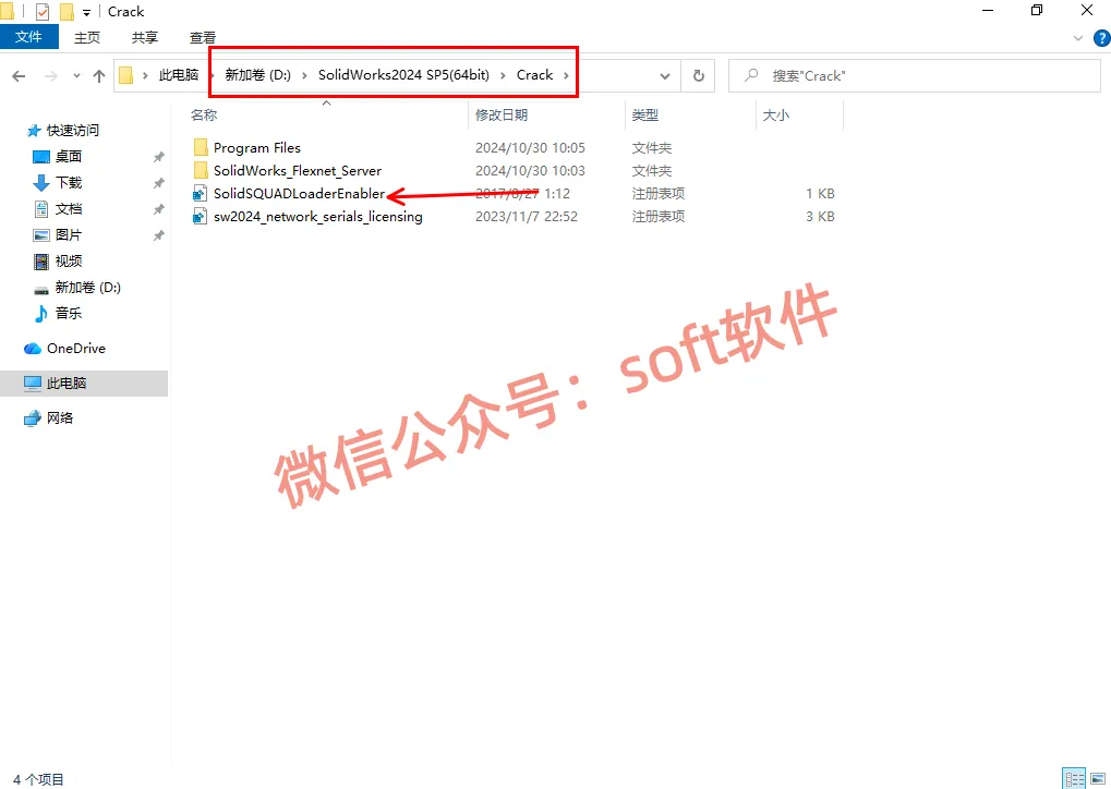 2,进入解压生成的文件夹里面,然后再进入Crack文件夹,鼠标双击运行sw2024_network_serials_licensing