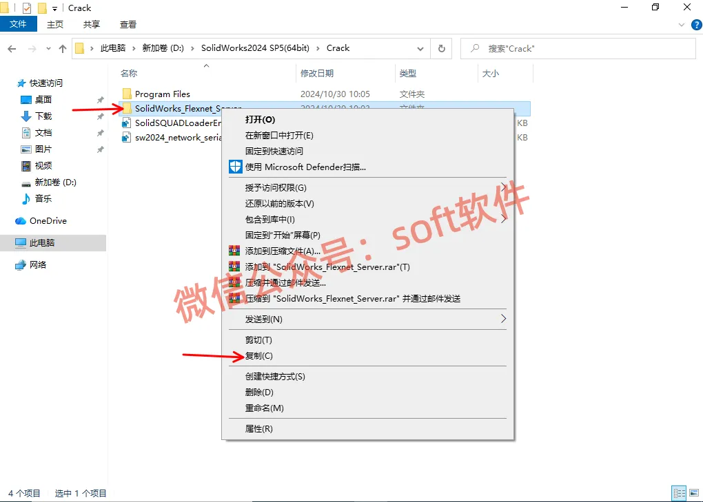 5,右键SolidWorks_Flexnet_Server文件夹,选择复制