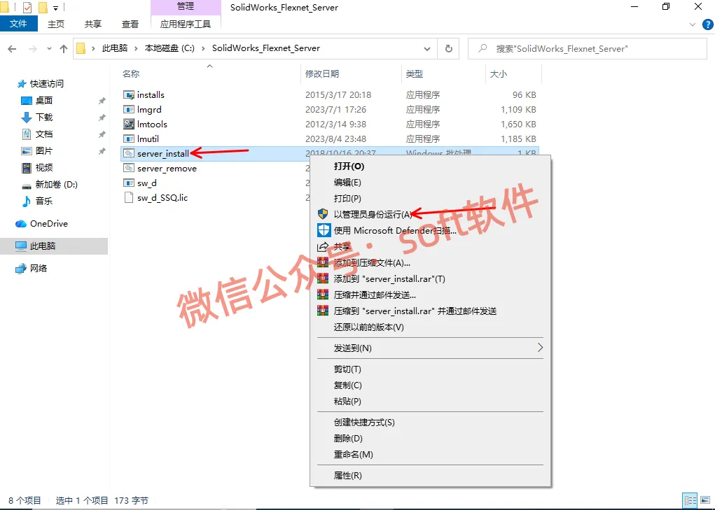 7,然后打开粘贴后的SolidWorks_Flexnet_Server文件夹,鼠标右键server_install,以管理员身份运行