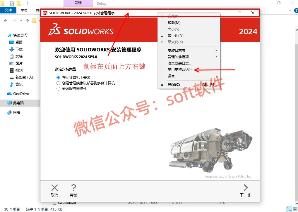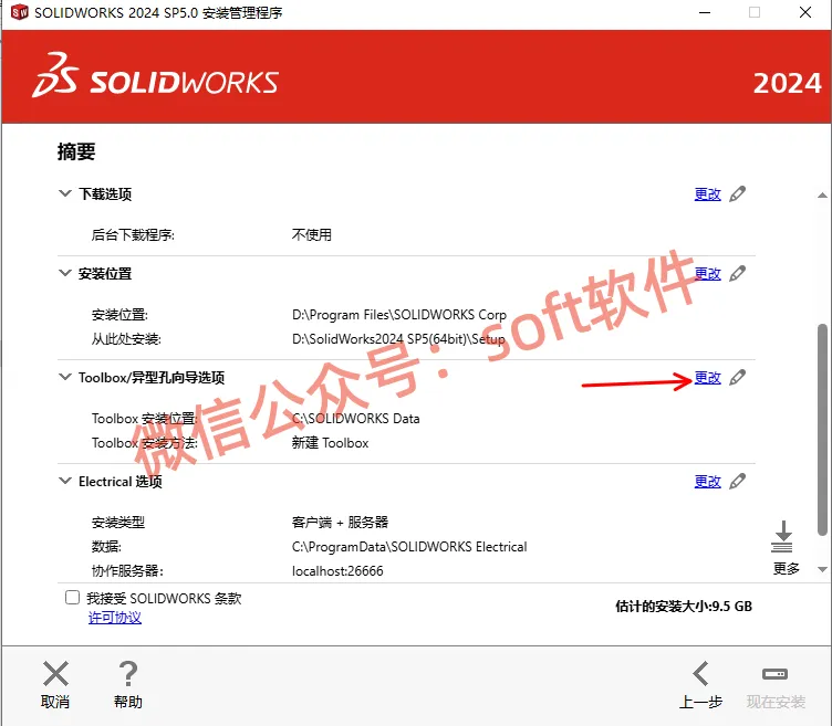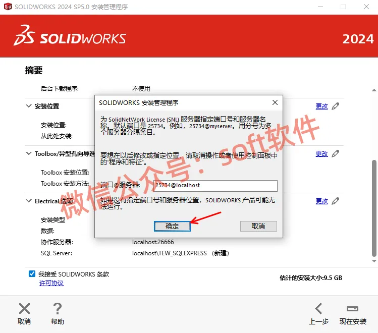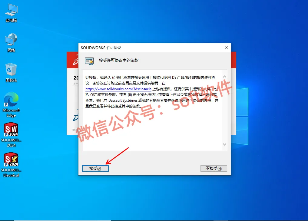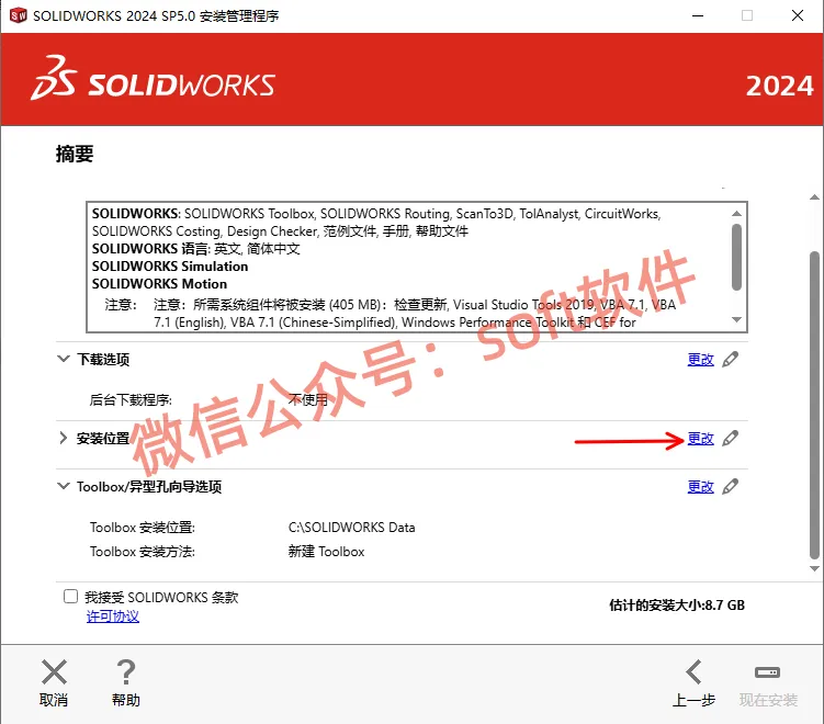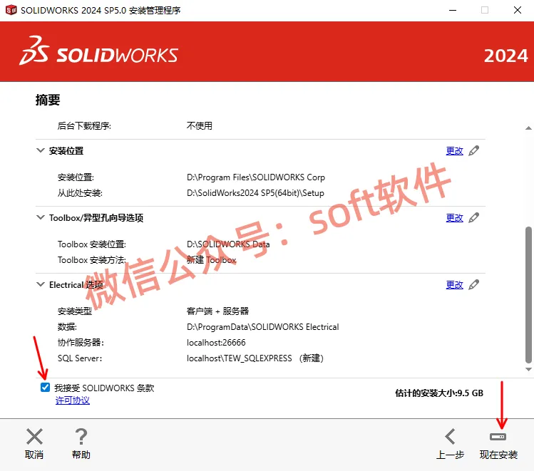 22,勾选我接受SOLIDWORKS条款,点击现在安装