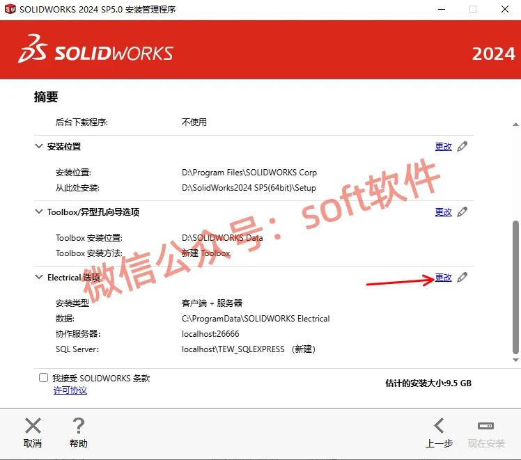 20,点击Electrical选项后的更改,(没有勾选此组件可忽略本步骤)