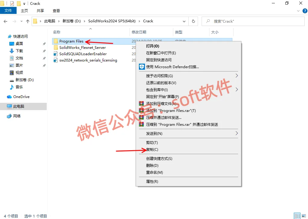 31,回到Crack文件夹内,鼠标右键Program Files文件夹,选择复制