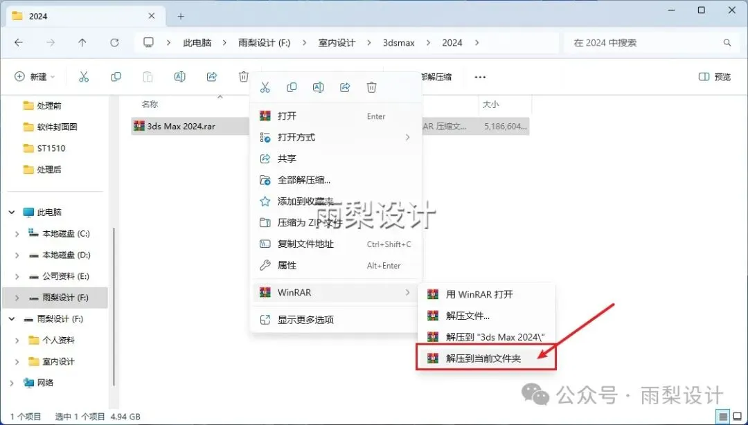 1.右键【下载的安装包】选择【解压当前文件夹】