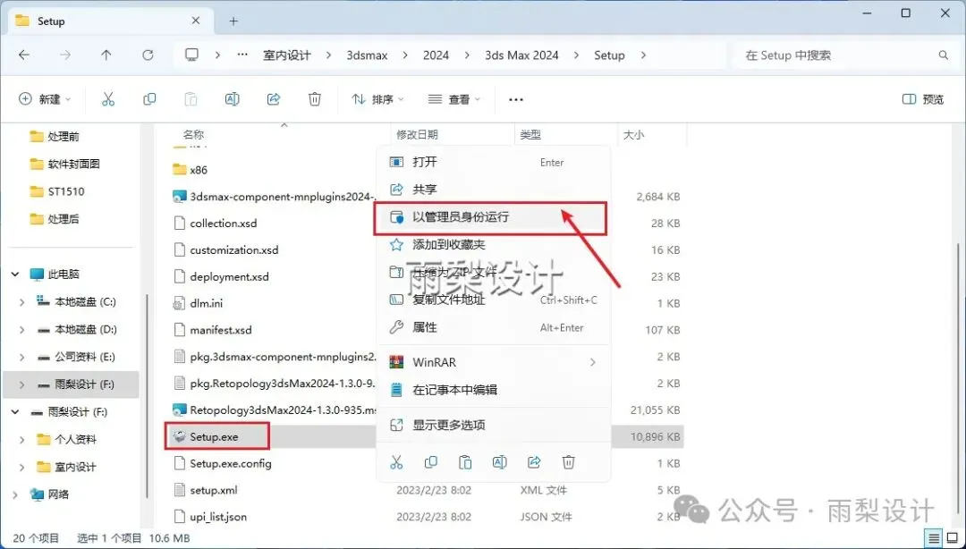 3.右键【Setup.exe】选择【以管理员身份运行】
