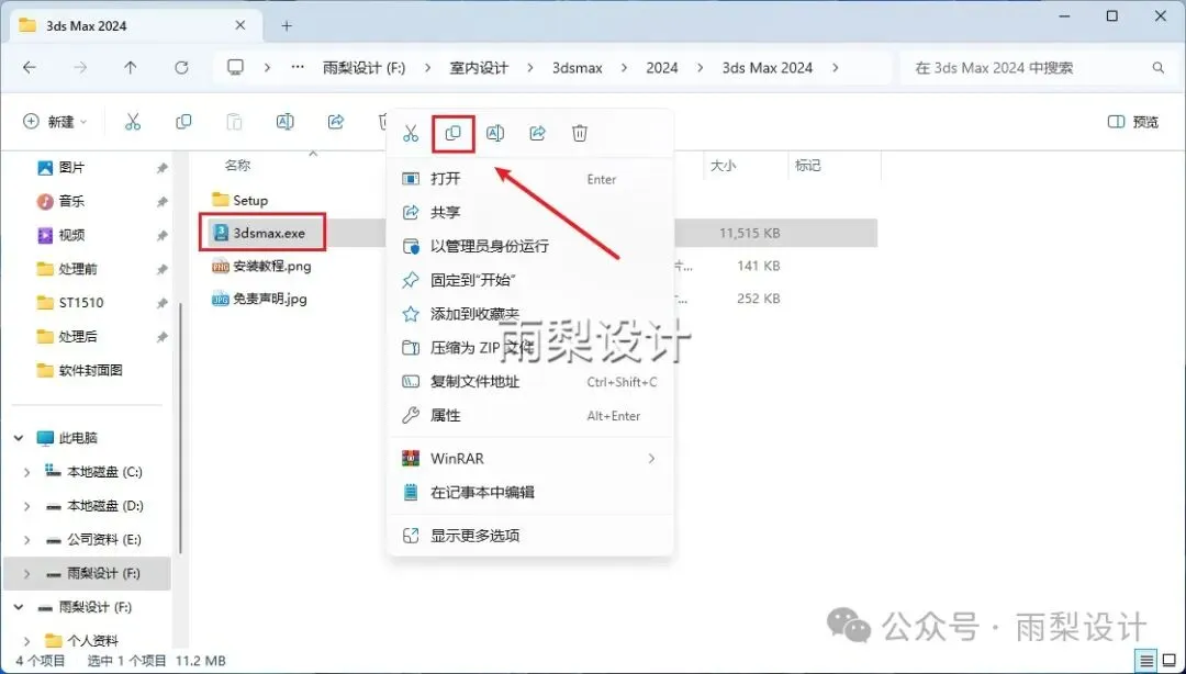 11.返回安装包;右键【3dsmax.exe】选择【复制】