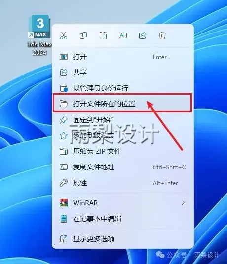 12.右键【3ds Max 2024】选择【打开文件所在位置】