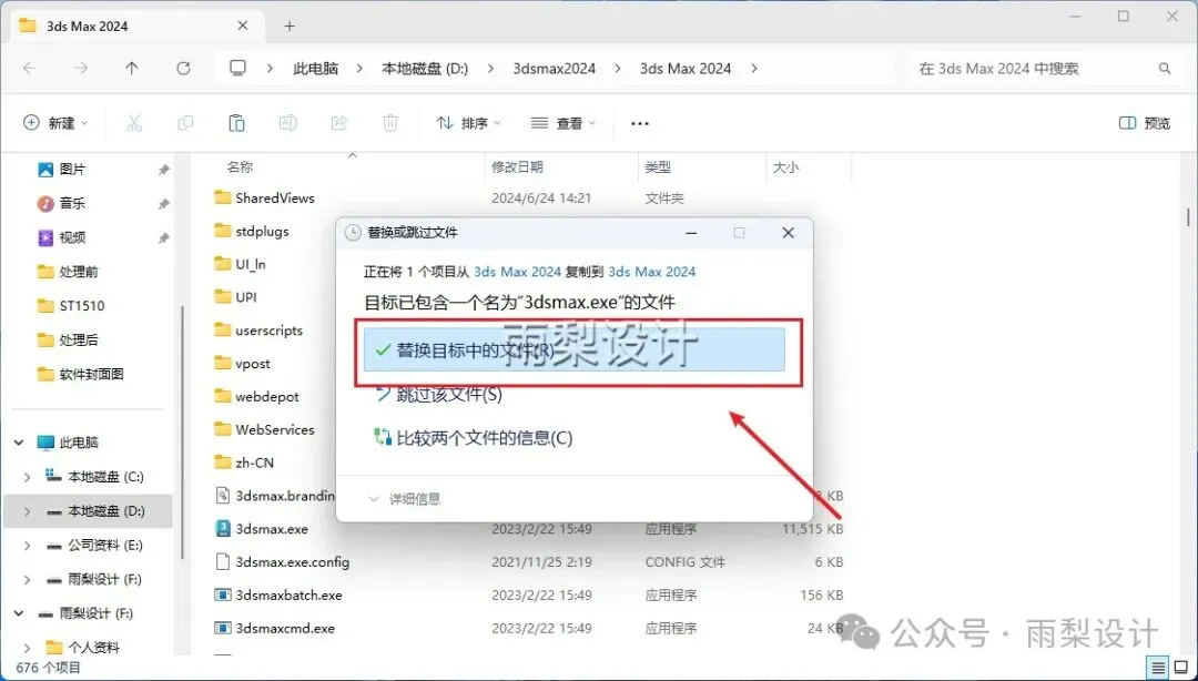 14.选择【替换目标中的文件】