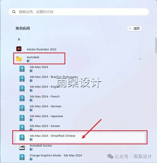 15.点击【开始】>【Autodesk】>【3ds Max2024-Simplified Chinese】