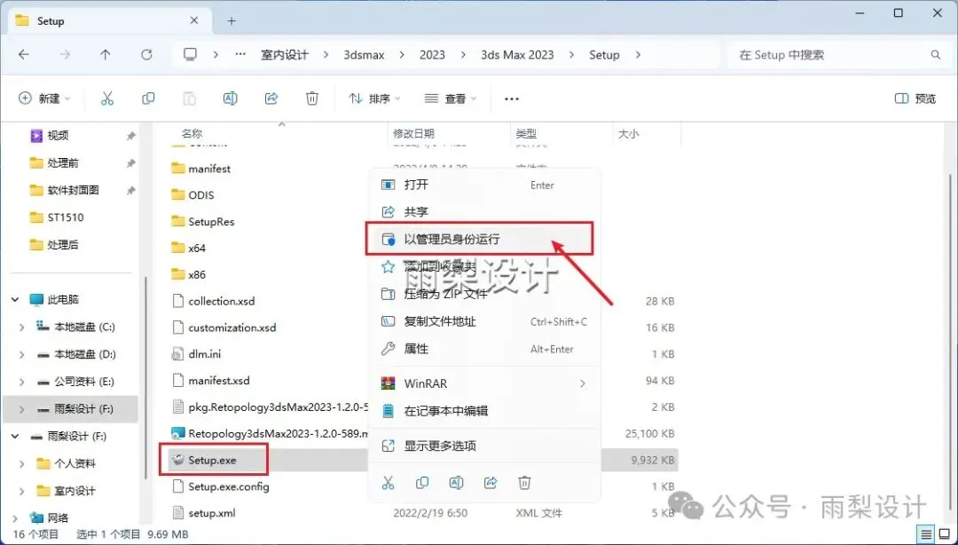 3.右键【Setup.exe】选择【以管理员身份运行】