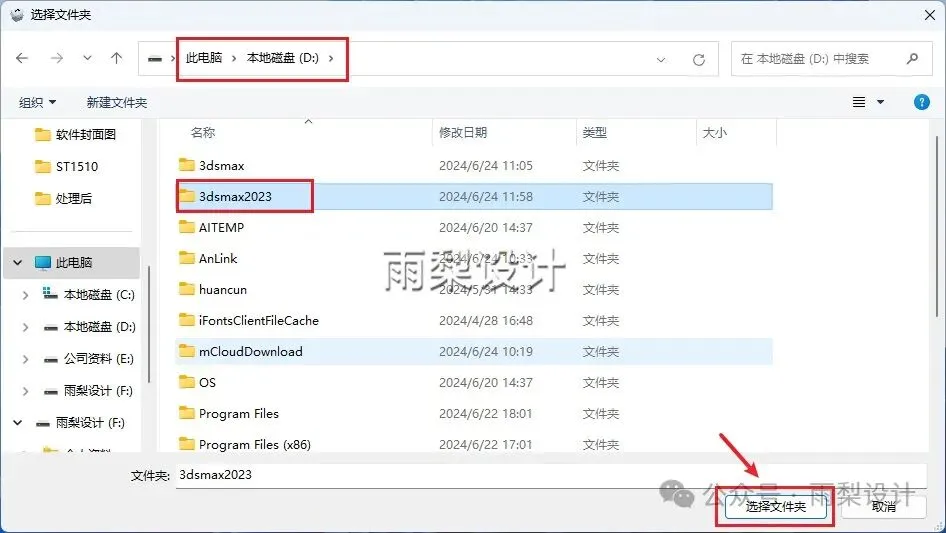 6.选择D盘,在D盘新建一个文件夹(名称不能是中文);点击【选择文件夹】