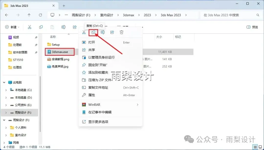 11.返回安装包;右键【3dsmax.exe】选择【复制】