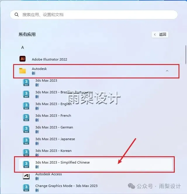 15.点击【开始】>【Autodesk】>【3ds Max2023-Simplified Chinese】