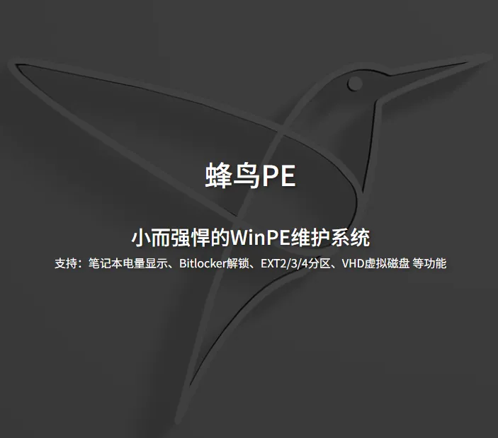 蜂鸟PE 是一款绿色纯净、无广告且完全免费的 WinPE 维护系统制作工具,体积小巧(通常在 400MB 以内),功能强大,支持 电量显示、BitLocker 解锁、Linux 分区识别、VHD 虚拟磁盘 等高级特性,适合用于系统安装、故障修复与数据救援。它基于 WimBuilder 构建,保留了 Windows 原生功能,无捆绑、不篡改浏览器主页,是 IT 维护人员和普通用户 alike 的可靠选择 。