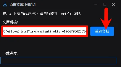 3.粘贴链接到工具,然后点击获取文档