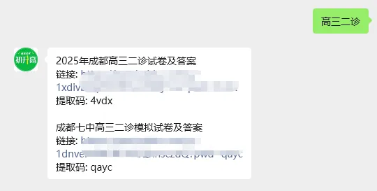 成都高三二诊即将开考!杨老师整理了2025届成都二诊的试卷及参考答案!各位家长可以下载让孩子练习一下。也提前祝各位同学取得理想成绩!