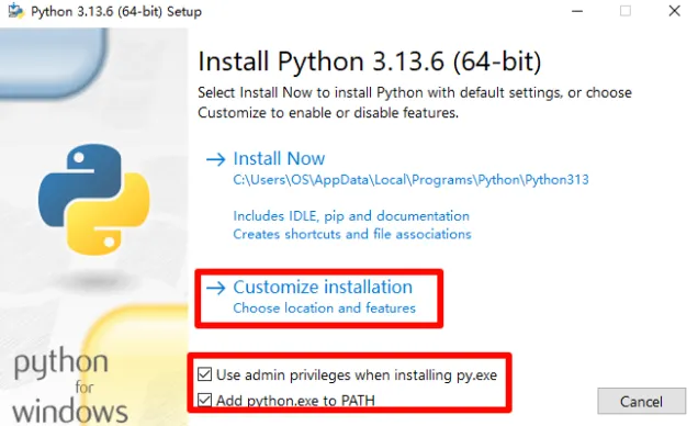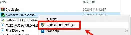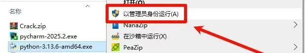 [夸克链接]:https://pan.quark.cn/s/10f3af46c0ae [百度链接]:https://pan.baidu.com/s/1RqLwNtvkF9OBJOzE0d9g7w 提取码: 1dxs注意!!!开始解压安装前一定要退出杀毒软件(包括第三方杀毒软件和电脑自带、防火墙、Windows Defender和实时保护等,安装完再打开!否则容易安装失败)安装前必须确保电脑之前没有安装过,如果安装过必须彻底卸载删除1,打开下载好的文件夹,找到压缩包【PyCharm 2025.2.zip】,鼠标右键选择【解压到PyCharm 2025.2\】。2,打开解压好的文件夹,找到应用程序【python-3.13.6-amd64.exe】,鼠标右键选择【以管理员身份运行】。3,勾选【Add Python…】和【Use admin privileges….】,然后点击【Customize installation】。