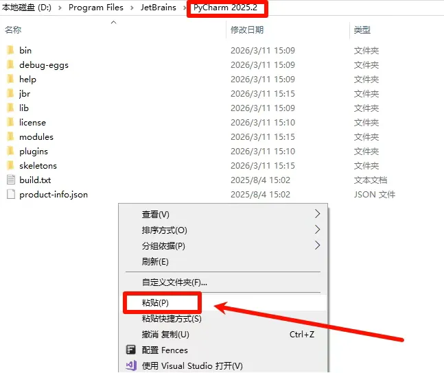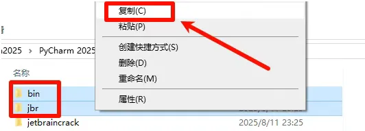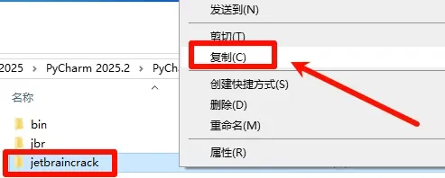 5,安装路径可以自己选择,路径中不要有中文或特殊字符,然后点击【Install】(推荐用这个路径)。8,返回之前解压好的文件夹,找到应用程序【pycharm-2025.2.exe】,鼠标右键选择【以管理员身份运行】。10,安装路径可以选择(建议只修改盘符),然后点击【下一步】。18,回到之前解压好的文件夹内找到压缩包【Crack.zip】,鼠标右键选择【解压到Crack\】。19,打开解压好的【Crack】文件夹,找到文件夹【jetbraincrack】,复制这个文件夹。21,返回【Crack】文件夹,将【bin】和【jbr】文件夹选择后复制。22,在桌面找到软件图标,鼠标右键选择【打开文件所在位置】。23,点击地址栏中的【PyCharm 2025.2】。27,打开后所有提示根据自己需要选择中文或英文,然后下一步即可,提示【数据共享】的页面切断点击【不发送】,软件即安装完成了。PyCharm 2025中文设置步骤: