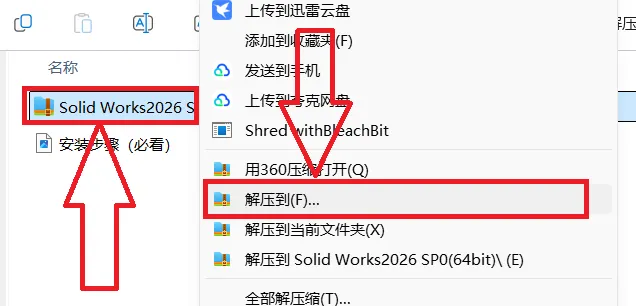 Solid Works2026 SP0(64bit)】软件的压缩包,选择解压。