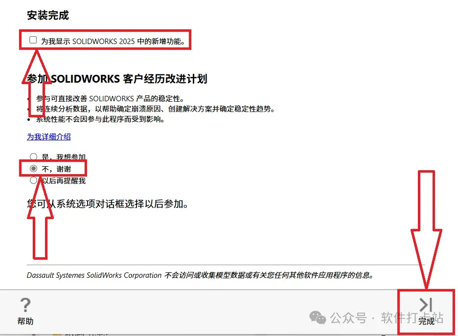 24.取消勾选【为我显示新功能】,选择【不,谢谢】,点击【完成】。