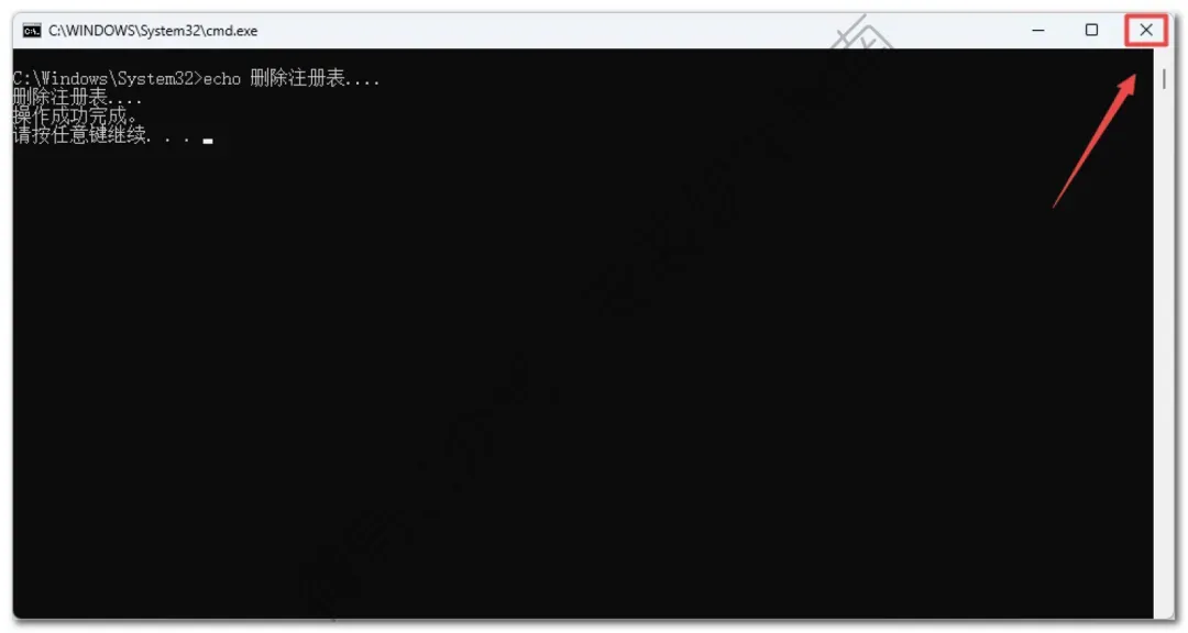 17、提示删除注册表成功,然后点右上角关闭