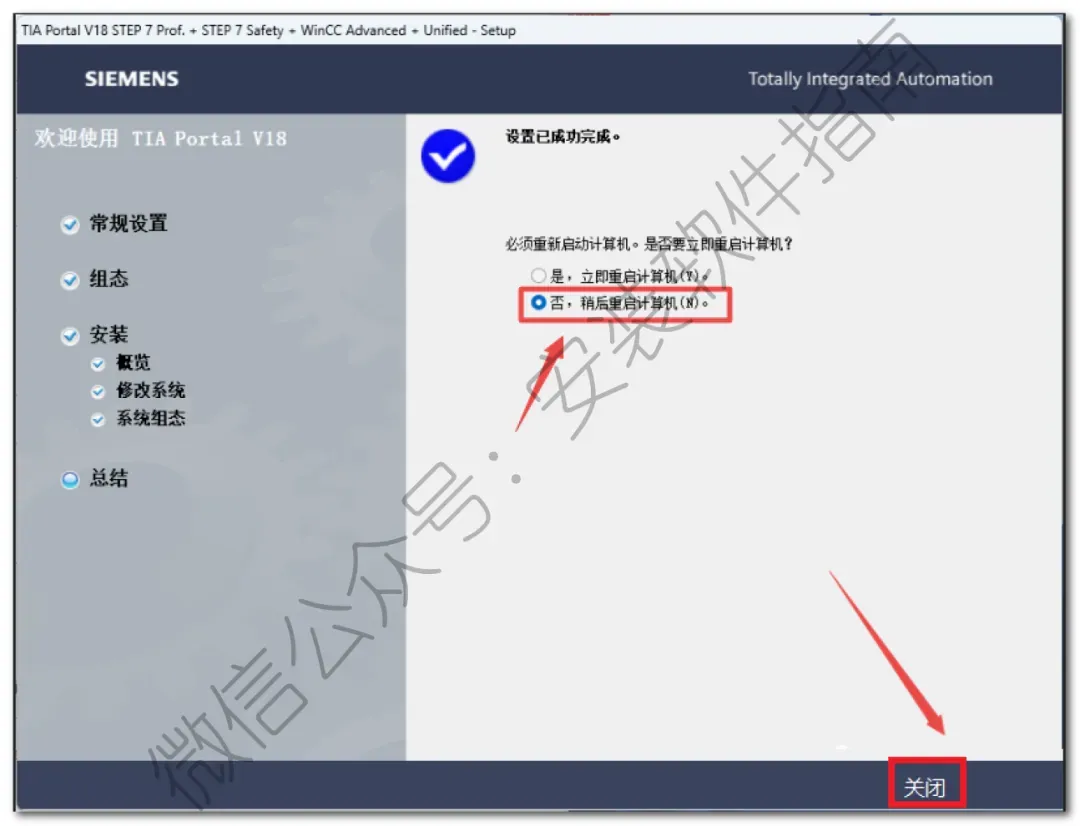 26、点否稍后重启计算机,然后点关闭