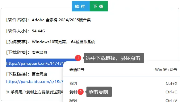 3.复制本文第一段的夸克下载链接(请勿输入示范链接)