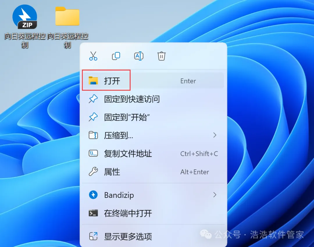 2、右键【打开】解压后的文件夹