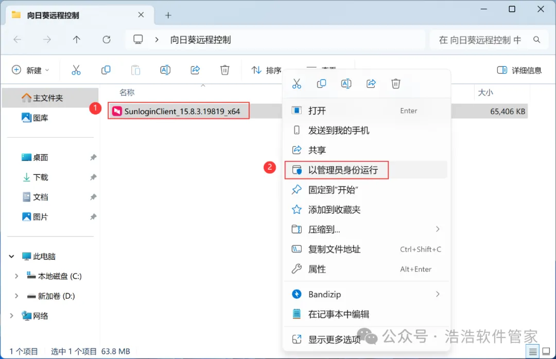 1、下载向日葵远程控制软件安装包到电脑上,右键选择【解压到向日葵远程控制\】