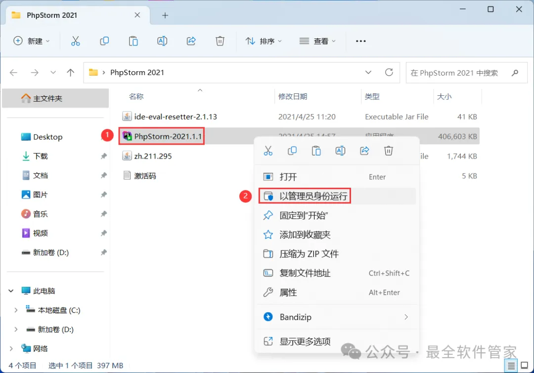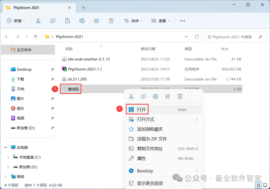 14、回到PhpStorm 2021文件夹,找到【激活码】文件,右键【打开】它