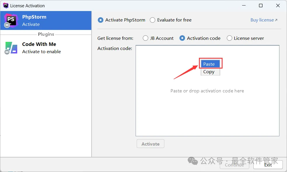 16、回到软件界面,右键Activation code下的空白处,点击【Paste】