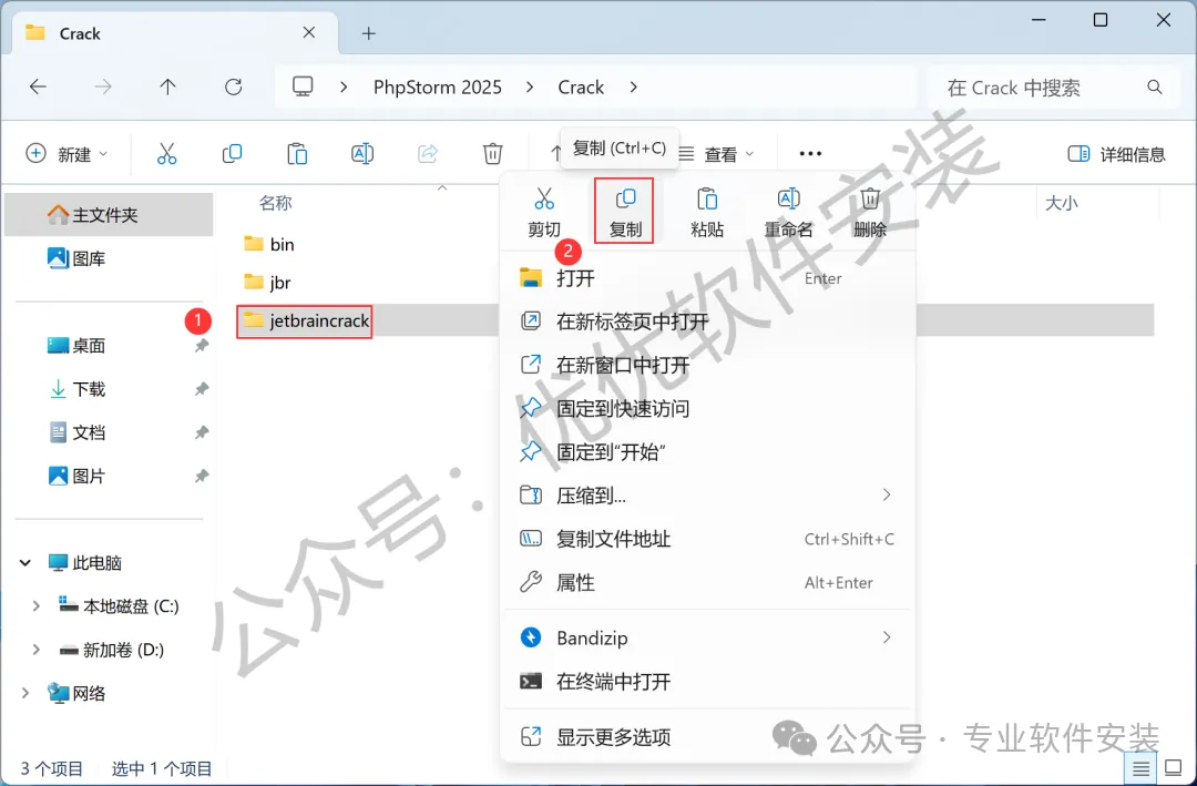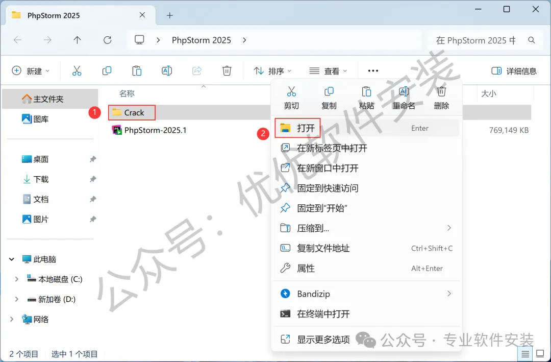 13、回到PhpStorm 2025文件夹,找到【Crack】文件夹,右键【打开】它