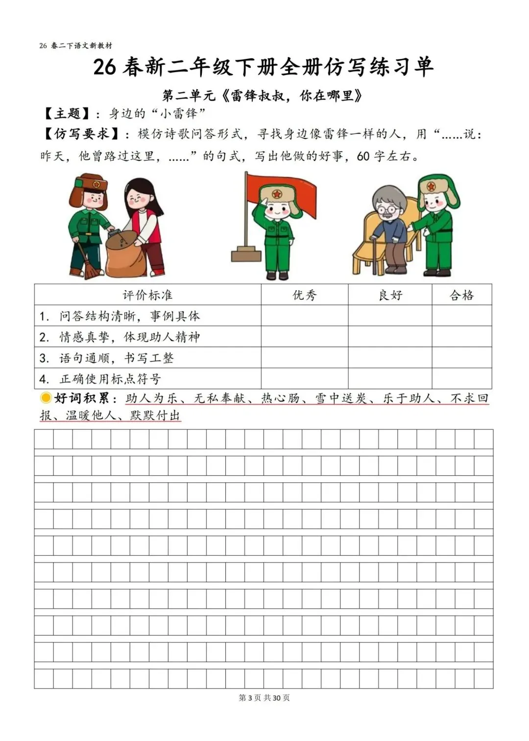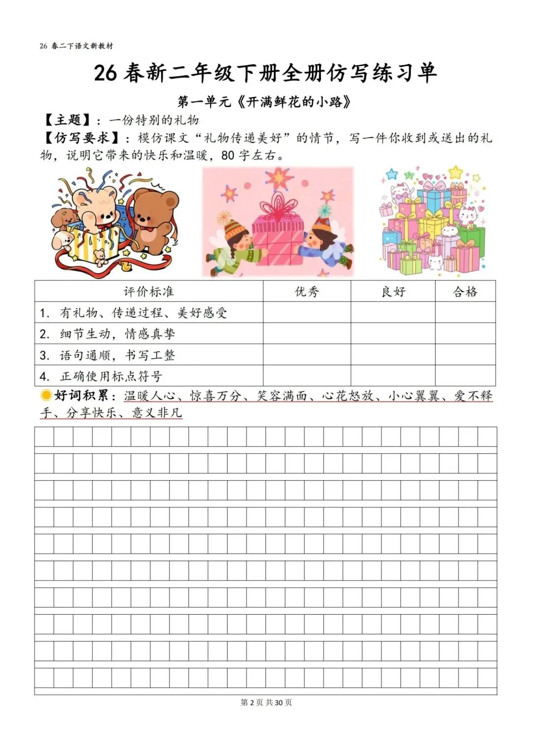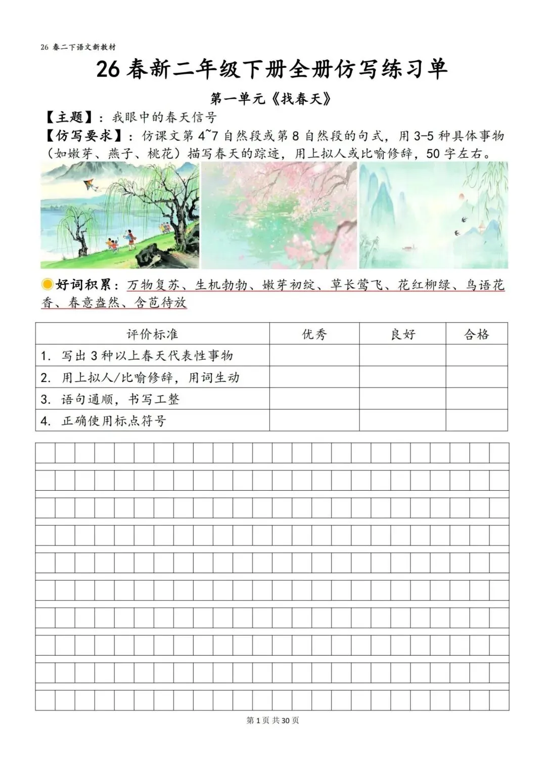 二年级下册语文全册仿写小练笔,建议收藏,家长可免费下载打印出来,帮助孩子学习,完整高清电子版,下载方式见文末。