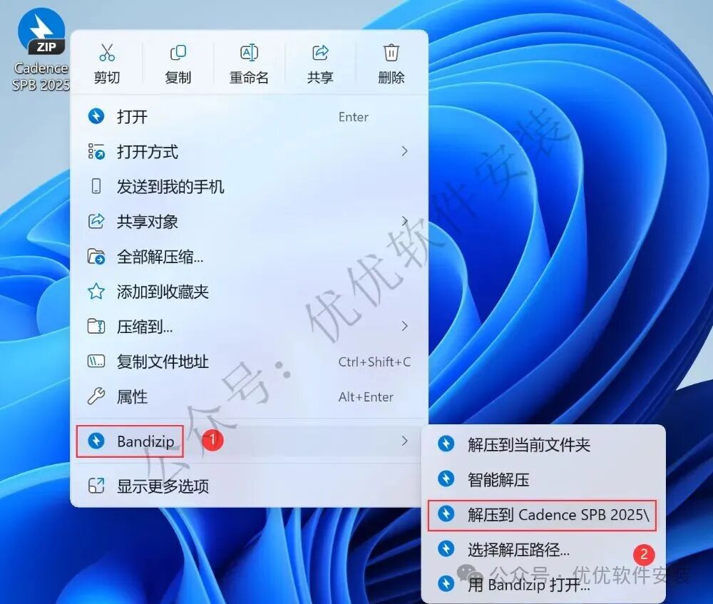 1、下载Cadence SPB 2025软件安装包到电脑上,右键选择【解压到Cadence SPB 2025\】